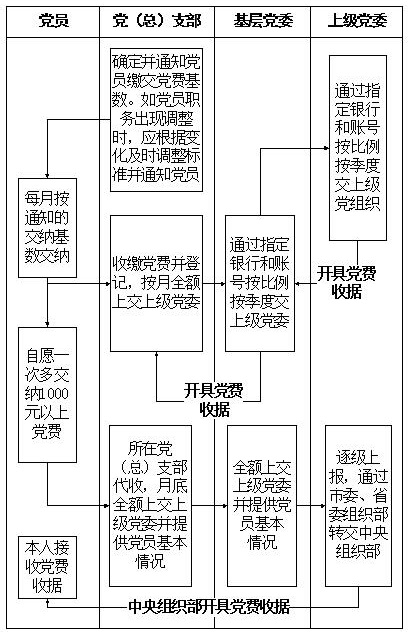 4.党员自愿一次多交纳1000元以上党费的,由所在党(总)支部代收,并于当月将款项和党员简要情况报上级党委,上级党委应将党费全额逐级上交至中组部,并附党员基本情况。