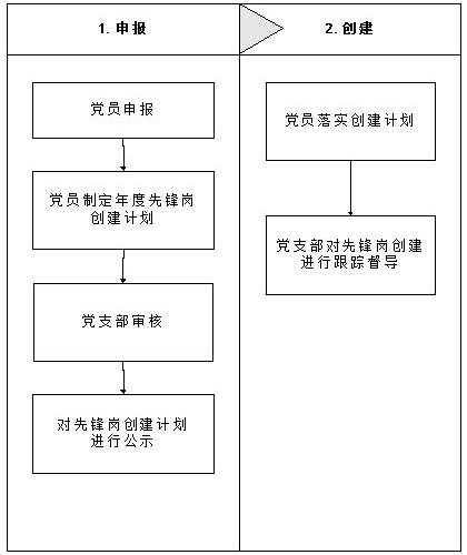 1.申报。党员先锋岗管理实行每年初党员自愿申请创建,党员需填写《“党员先锋岗”申请表》(附件1),并结合党员岗位职责和年度绩效目标,制定年度先锋岗创建计划。党员所在党支部应进行审核把关,并将“党员先锋岗”申请人员岗位职责以及创建计划,作为党员公开承诺的内容,在本单位公开,接受监督。