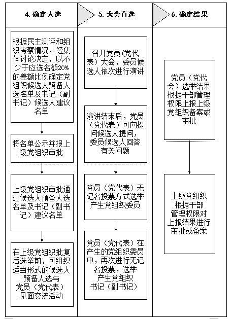8.直接选举。书记、副书记、委员应均由全体党员(党代表)直接选举产生。选举分两轮进行,先选举委员,再选举书记、副书记。