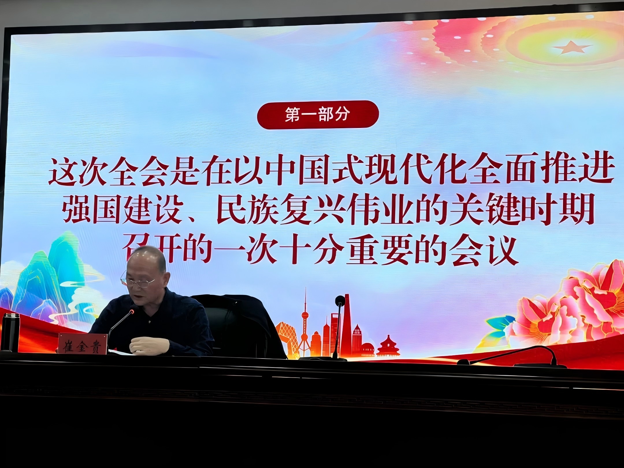 崔金贵在讲授专题党课时指出,要深刻认识党的二十届三中全会是在以中国式现代化全面推进强国建设、民族复兴伟业关键时期召开的一次十分重要的会议,学习贯彻党的二十届三中全会精神,是当前和今后一个时期全党全国的一项重大政治任务;要全面准确理解《决定》提出的进一步全面深化改革重大举措,结合实际情况,制定切实可行的实施方案,确保改革措施落地见效。要加强宣传引导,提高对改革的认识和支持度,形成推动改革的强大合力;要突出抓好国资国企领域的深化改革工作,加强顶层设计和政策引导,优化国资国企布局和结构,提高其竞争力和创新力。要加强监管和风险防范,确保国资国企健康稳定发展;要在新时期进一步加强国有企业干部队伍建设,注重选拔培养具有高素质、高能力的干部人才,提高干部队伍的综合素质和业务能力,加强党风廉政建设和反腐败斗争,营造风清气正的政治生态和干事创业的良好环境。